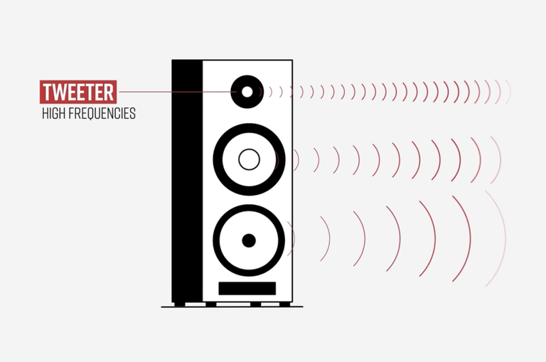 Tweeters reproduce the highest, most directional frequencies, while midrange drivers and woofers reproduce the more diffuse low frequencies.